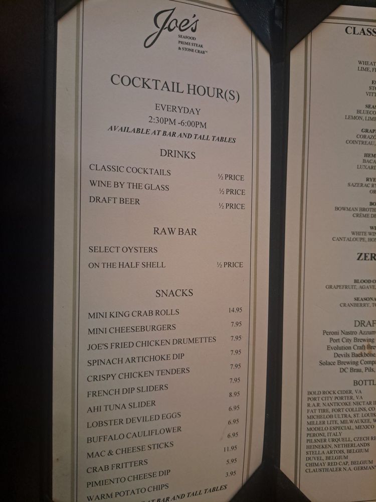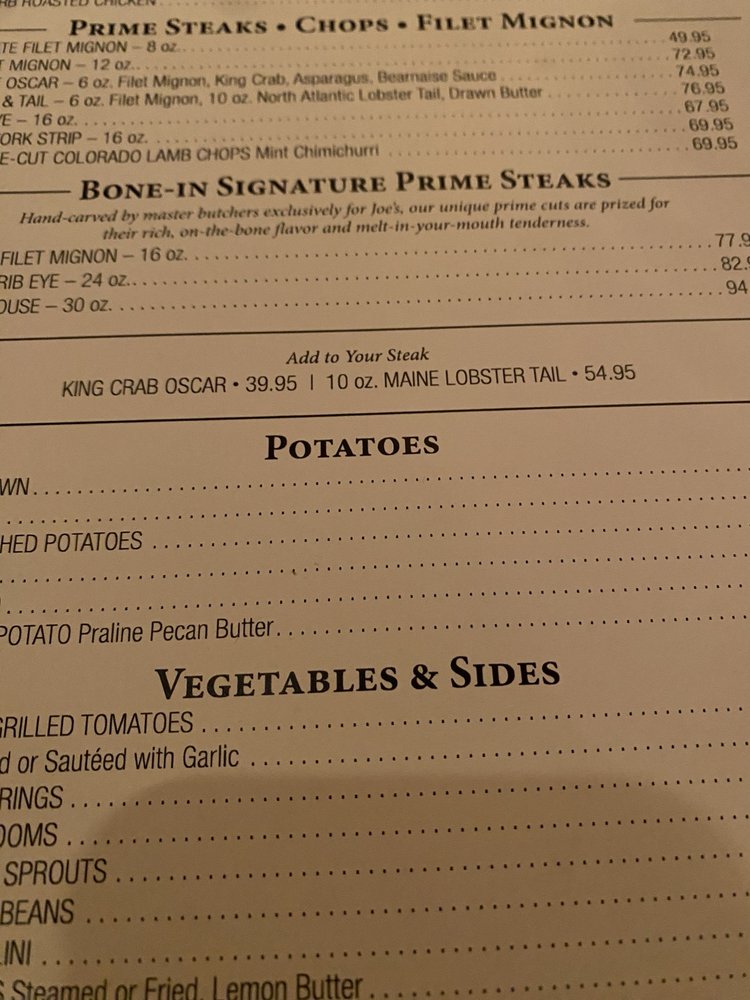 Joe's Seafood, Prime Steak & Stone Crab Menu (2025 Update)
